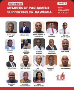 Sixty-three Members of Parliament (MPs) from the governing New Patriotic Party (NPP) have formally declared their support for former Vice President Dr. Mahamudu Bawumia in the party’s upcoming presidential primaries.
