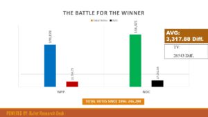 According to trend analysis compiled by the Bullet Research Desk, the historical average margin between the two main parties in Kpandai stands at roughly 3,300 votes, underscoring just how finely balanced the constituency has become.