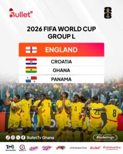 Ghana’s Black Stars will face England, Croatia and Panama in the group stage of the expanded 2026 FIFA World Cup.