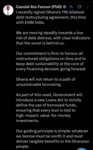 Ghana has signed its 11th bilateral debt restructuring agreement, with India’s EXIM Bank, as government intensifies efforts to stabilise the country’s finances and reduce the risk of debt distress.