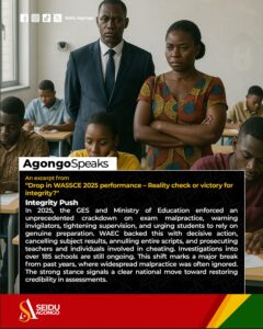 This unprecedented enforcement contrasts sharply with previous years, when civil society groups like Africa Education Watch (Eduwatch) repeatedly flagged systemic malpractice with little consequence. It does appear that for too long, we allowed a culture of shortcuts to thrive to be able to present a particular image about our education system and its products.