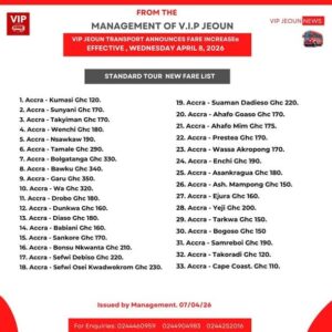 Other key routes affected include journeys from Accra to Sunyani, as well as trips to Tamale, Bolgatanga, and Wa, all of which have seen noticeable increases in ticket prices.